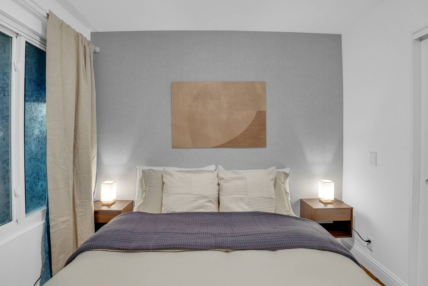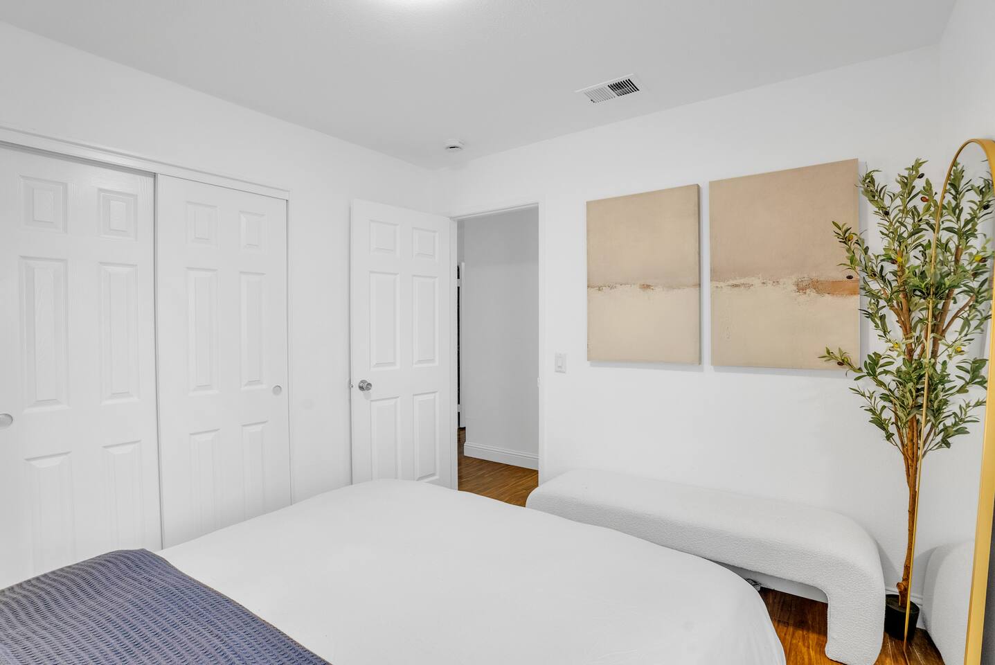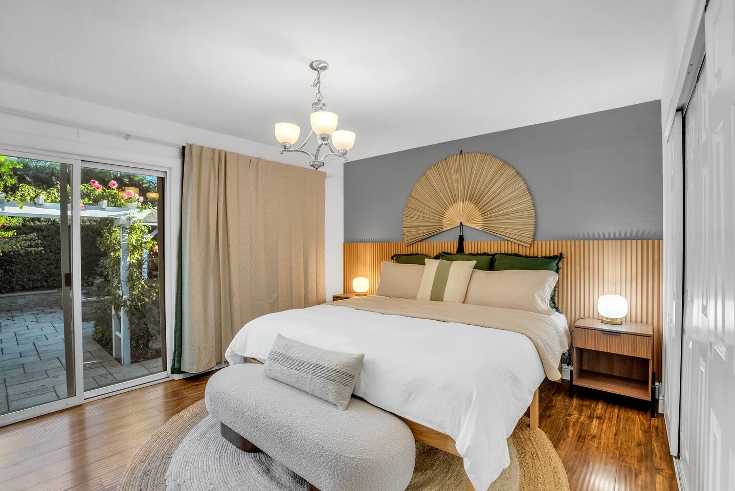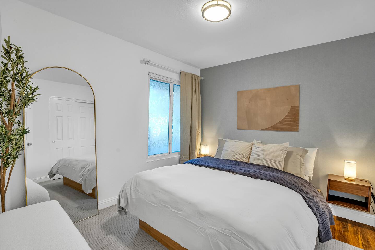 🌸 Japandi-Style Decor: Minimalist elegance paired with cozy functionality to create a calming ambiance. 💦 Jacuzzi: Unwind in your private outdoor jacuzzi under the stars. 🎮 Game Room: Equipped with entertainment for all ages—perfect for game nights. 🍴 Fully Equipped Kitchen: Prepare your favorite meals with ease using our state-of-the-art appliances. 🔥 Barbecue Grill: Enjoy al fresco dining with our top-notch grill in the garden. 🌿 Beautiful Garden: Stroll through lush greenery or savor your morning coffee in a peaceful outdoor setting. BEDROOMS Within the home, you’ll find four generous bedrooms filled with luxurious King and Queen beds, and floor mattresses topped with soft, quality linen along with plenty of space for you to unpack and make yourself at home. ⭐️ 1. Master bedroom (King bed, access to garden, private master bathroom, large closet) ⭐️ 2. Queen bedroom (Queen bed, extra large full length mirror, additional bed bench for storage and seating) ⭐️ 3. Queen bedroom (Queen bed with japandi inspired surrounding art piece by famous Japanese artist, Yayoi Kusama) ⭐️ 4.Queen bedroom (Queen bed with japandi inspired surrounding art piece by Kazbeg R.) BATHROOMS Equipped with your bath essentials for your convenience, unwind and freshen up in our full bathrooms. ⭐️ Full set of towels ⭐️ Shampoo, Conditioner, Body Wash, Lotion, Hand soap ⭐️ Hair dryer, Diffuser, Bathroom Mat KITCHEN The kitchen comes fully equipped with everything you would need to cook up all your favorite meals, from the oven to the microwave, to the toaster and blender, to the spacious fridge/freezer. Get your day going right with all the cooking essentials you would need right at your fingertips. ⭐️ Fully equipped and stocked ⭐️ Highlighted appliances: Instapot, Fryer, Skillet, Water Kettle, Coffee Maker ⭐️ Dining table seating 8 comfortably LIVING ROOM Our living room is a serene haven designed to embody the timeless principles of Japandi style, seamlessly blending Japanese minimalism with Scandinavian coziness. ⭐️ Sophisticated Furniture: Sink into plush couches paired with stylish swivel chairs, inviting relaxation and conversation. The natural textures and muted tones create a harmonious ambiance. ⭐️ Art Gallery Appeal: The space features an exquisite art collection, curated to complement the decor with subtle yet captivating pieces that elevate the room's aesthetic. ⭐️ Thoughtful Details: Warm wood finishes, clean lines, and soft, neutral fabrics complete the balanced and serene environment, ideal for unwinding or entertaining guests. GARDEN Unwind and entertain in this expansive, thoughtfully designed garden retreat, ideal for creating cherished memories with family and friends. Here’s what awaits you: 🌿 Jacuzzi: Soak your stress away in the bubbling jacuzzi, surrounded by greenery and tranquility. 🌸 Dining Table for Eight: Share delicious meals under the open sky with our elegant dining setup, ideal for gatherings. 💦 Fountain: Relax to the soothing sounds of a beautiful fountain, adding a touch of serenity to the atmosphere. 🌳 Large Grass Area: Whether it's lounging, picnicking, or playing games, this spacious lawn is perfect for all ages. 🎯 Cornhole Game: Challenge friends and family to a fun game of cornhole on the lawn. 🏡 Gazebo with Hanging Egg Chairs: Lounge in style in our cozy gazebo, complete with luxurious hanging egg chairs to swing your cares away. 🍴 Outdoor Dining: Enjoy meals under the open sky at the table set for eight, designed for comfort and connection. This garden is more than just a backyard—it's your private sanctuary designed to provide peace, joy, and connection. Game Room Bliss: Fun for All Ages Experience the ultimate entertainment hub, thoughtfully designed for excitement and relaxation. Our game room offers: 🎱 3-in-1 Table: A multi-functional masterpiece that transforms from pool to ping pong to a spacious board game table. Comfortably seating eight, it’s perfect for hours of gaming and friendly competition. ⚽ Foosball Table: Bring out your competitive side with this fast-paced classic. 📺 55-Inch Smart TV: Lounge on the two cozy sofas and enjoy your favorite shows, movies, or gaming marathons. 🎲 Board Games Galore: A curated selection of board games ensures fun for groups of all sizes and interests. UTILITY ROOM For longer stays, freshen up your items in our utility room. ⭐️ Washer ⭐️ Dryer ⭐️ Complimentary detergent Nearby Amenties within 5 minutes drive Gym: City Sports Gym, 24-hour fitness Groceries: Costco, Target, Safeway