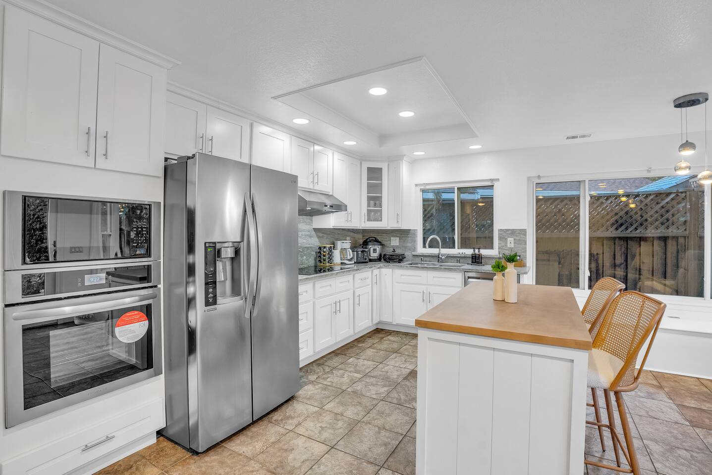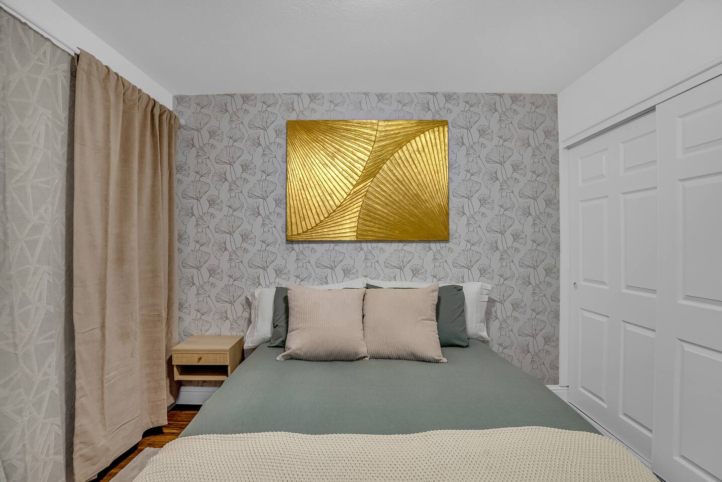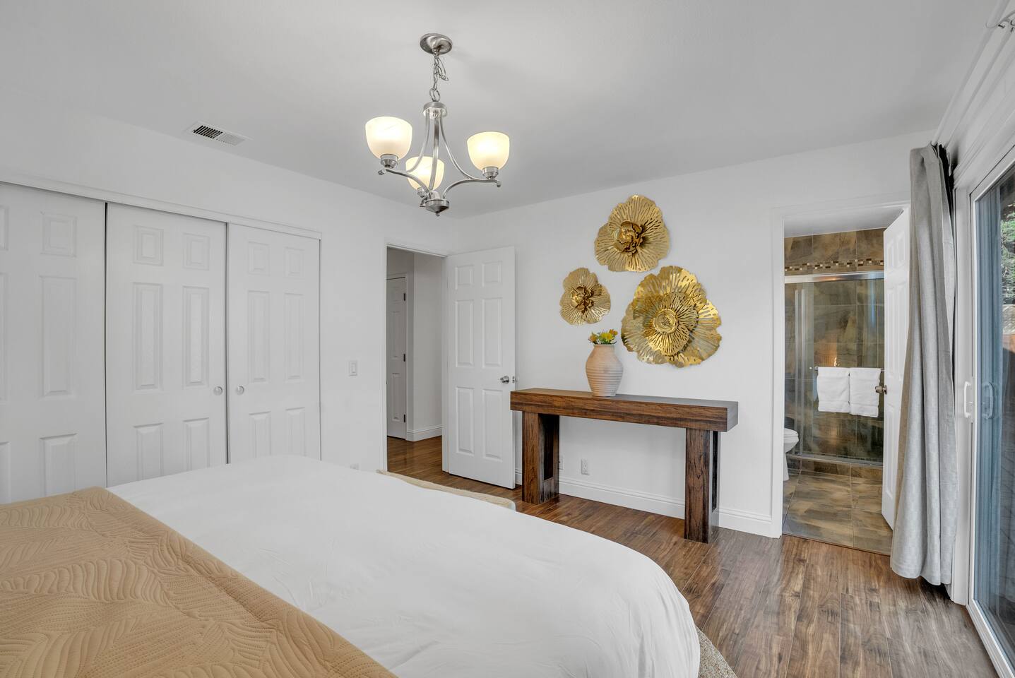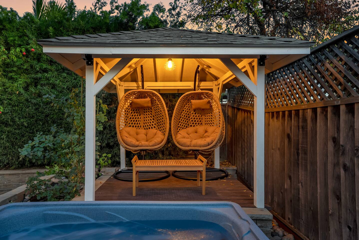 🌸 Japandi-Style Decor: Minimalist elegance paired with cozy functionality to create a calming ambiance. 💦 Jacuzzi: Unwind in your private outdoor jacuzzi under the stars. 🎮 Game Room: Equipped with entertainment for all ages—perfect for game nights. 🍴 Fully Equipped Kitchen: Prepare your favorite meals with ease using our state-of-the-art appliances. 🔥 Barbecue Grill: Enjoy al fresco dining with our top-notch grill in the garden. 🌿 Beautiful Garden: Stroll through lush greenery or savor your morning coffee in a peaceful outdoor setting. BEDROOMS Within the home, you’ll find four generous bedrooms filled with luxurious King and Queen beds, and floor mattresses topped with soft, quality linen along with plenty of space for you to unpack and make yourself at home. ⭐️ 1. Master bedroom (King bed, access to garden, private master bathroom, large closet) ⭐️ 2. Queen bedroom (Queen bed, extra large full length mirror, additional bed bench for storage and seating) ⭐️ 3. Queen bedroom (Queen bed with japandi inspired surrounding art piece by famous Japanese artist, Yayoi Kusama) ⭐️ 4.Queen bedroom (Queen bed with japandi inspired surrounding art piece by Kazbeg R.) BATHROOMS Equipped with your bath essentials for your convenience, unwind and freshen up in our full bathrooms. ⭐️ Full set of towels ⭐️ Shampoo, Conditioner, Body Wash, Lotion, Hand soap ⭐️ Hair dryer, Diffuser, Bathroom Mat KITCHEN The kitchen comes fully equipped with everything you would need to cook up all your favorite meals, from the oven to the microwave, to the toaster and blender, to the spacious fridge/freezer. Get your day going right with all the cooking essentials you would need right at your fingertips. ⭐️ Fully equipped and stocked ⭐️ Highlighted appliances: Instapot, Fryer, Skillet, Water Kettle, Coffee Maker ⭐️ Dining table seating 8 comfortably LIVING ROOM Our living room is a serene haven designed to embody the timeless principles of Japandi style, seamlessly blending Japanese minimalism with Scandinavian coziness. ⭐️ Sophisticated Furniture: Sink into plush couches paired with stylish swivel chairs, inviting relaxation and conversation. The natural textures and muted tones create a harmonious ambiance. ⭐️ Art Gallery Appeal: The space features an exquisite art collection, curated to complement the decor with subtle yet captivating pieces that elevate the room's aesthetic. ⭐️ Thoughtful Details: Warm wood finishes, clean lines, and soft, neutral fabrics complete the balanced and serene environment, ideal for unwinding or entertaining guests. GARDEN Unwind and entertain in this expansive, thoughtfully designed garden retreat, ideal for creating cherished memories with family and friends. Here’s what awaits you: 🌿 Jacuzzi: Soak your stress away in the bubbling jacuzzi, surrounded by greenery and tranquility. 🌸 Dining Table for Eight: Share delicious meals under the open sky with our elegant dining setup, ideal for gatherings. 💦 Fountain: Relax to the soothing sounds of a beautiful fountain, adding a touch of serenity to the atmosphere. 🌳 Large Grass Area: Whether it's lounging, picnicking, or playing games, this spacious lawn is perfect for all ages. 🎯 Cornhole Game: Challenge friends and family to a fun game of cornhole on the lawn. 🏡 Gazebo with Hanging Egg Chairs: Lounge in style in our cozy gazebo, complete with luxurious hanging egg chairs to swing your cares away. 🍴 Outdoor Dining: Enjoy meals under the open sky at the table set for eight, designed for comfort and connection. This garden is more than just a backyard—it's your private sanctuary designed to provide peace, joy, and connection. Game Room Bliss: Fun for All Ages Experience the ultimate entertainment hub, thoughtfully designed for excitement and relaxation. Our game room offers: 🎱 3-in-1 Table: A multi-functional masterpiece that transforms from pool to ping pong to a spacious board game table. Comfortably seating eight, it’s perfect for hours of gaming and friendly competition. ⚽ Foosball Table: Bring out your competitive side with this fast-paced classic. 📺 55-Inch Smart TV: Lounge on the two cozy sofas and enjoy your favorite shows, movies, or gaming marathons. 🎲 Board Games Galore: A curated selection of board games ensures fun for groups of all sizes and interests. UTILITY ROOM For longer stays, freshen up your items in our utility room. ⭐️ Washer ⭐️ Dryer ⭐️ Complimentary detergent Nearby Amenties within 5 minutes drive Gym: City Sports Gym, 24-hour fitness Groceries: Costco, Target, Safeway