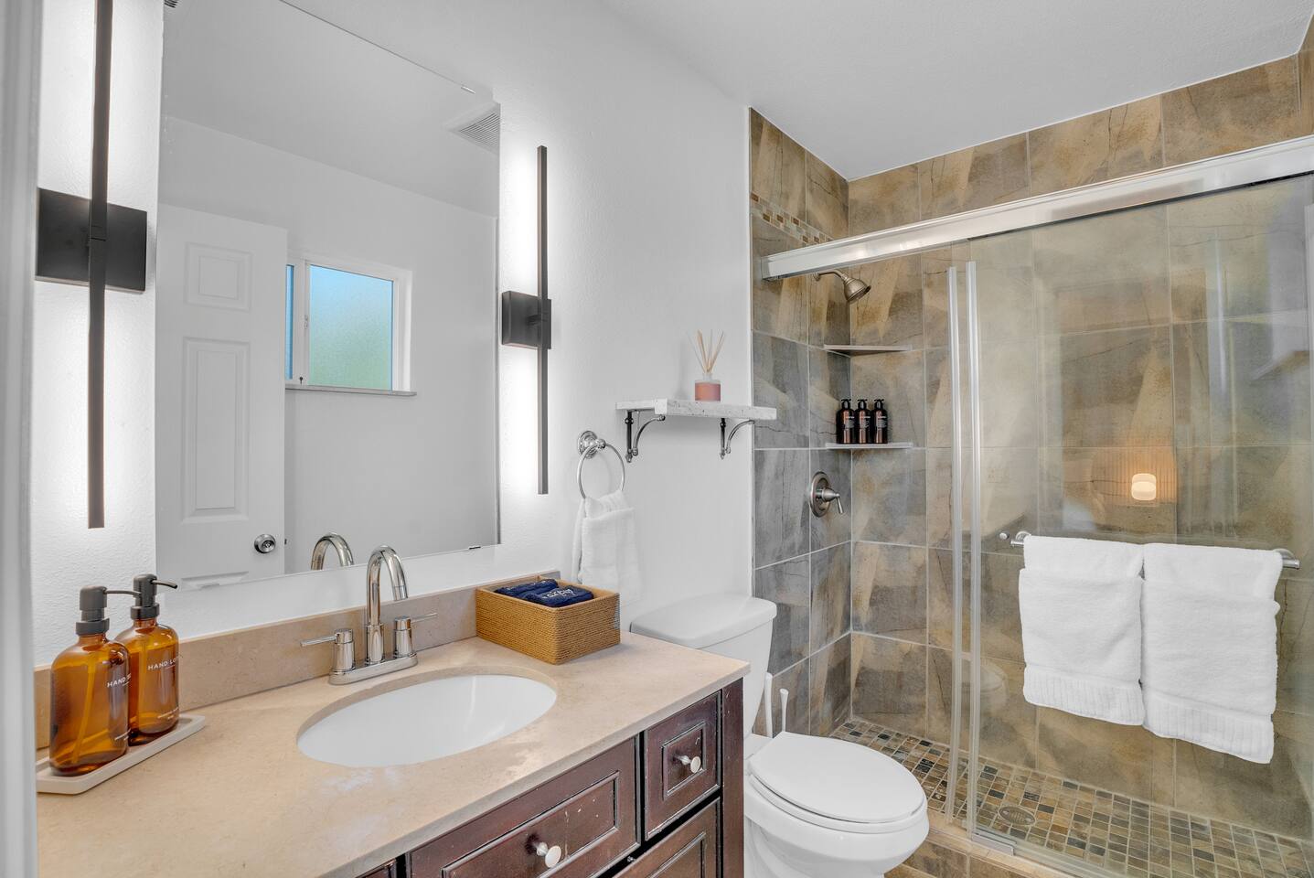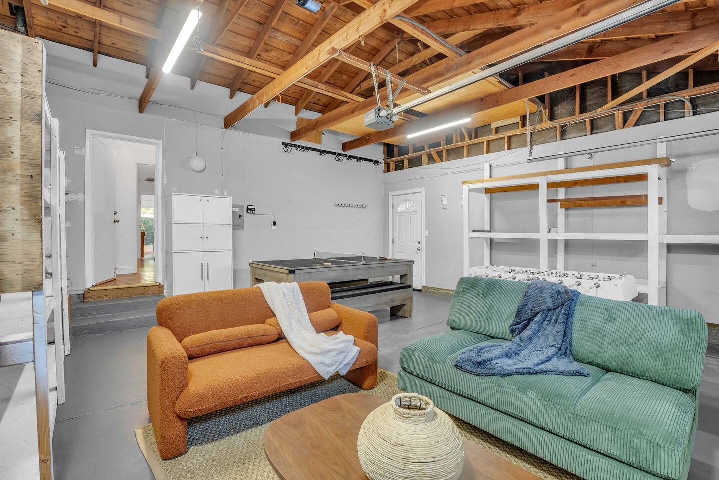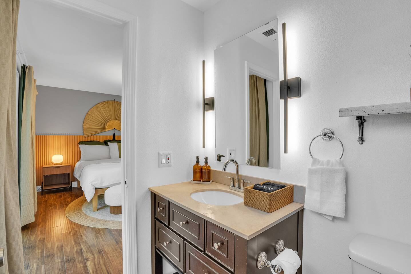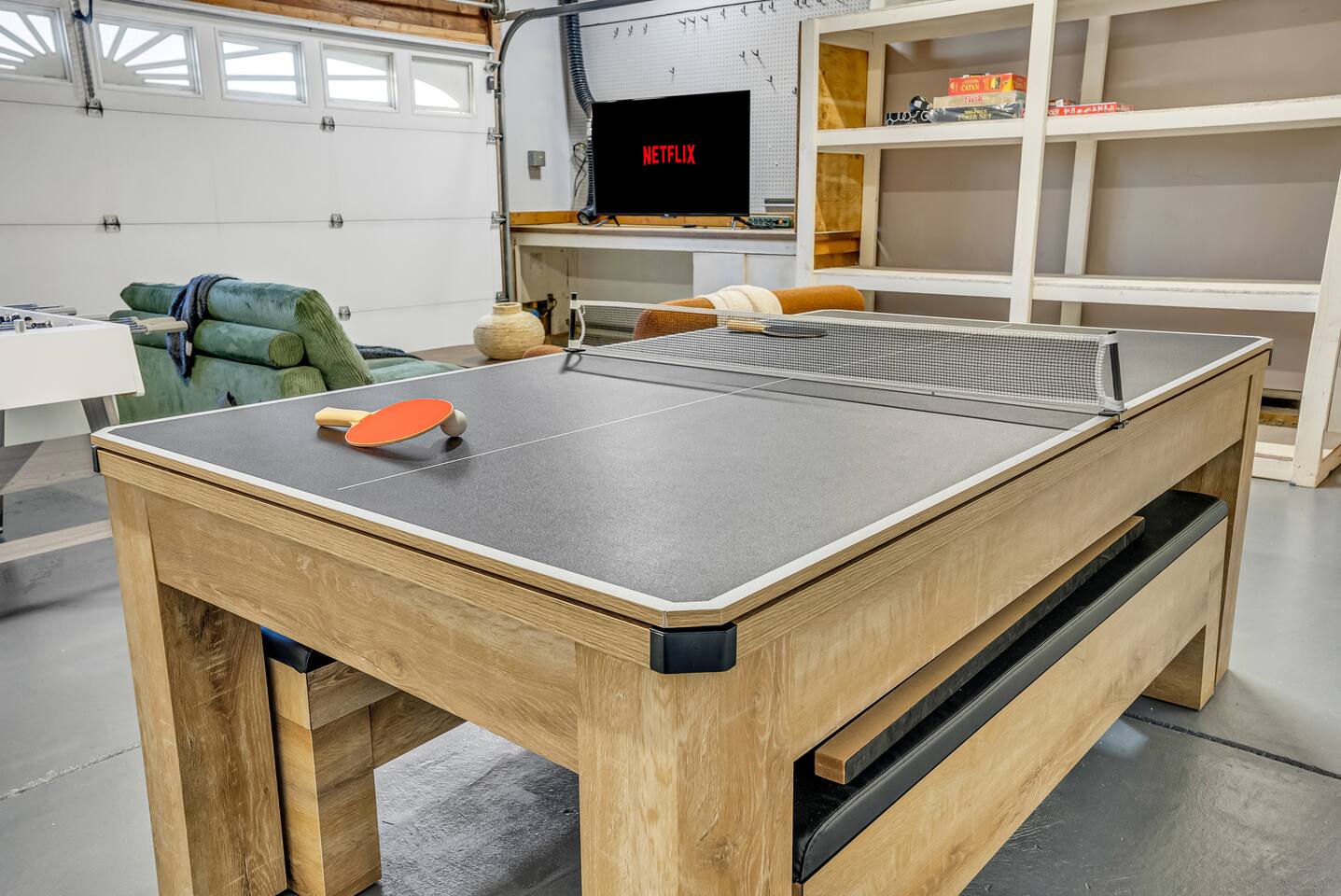 🌸 Japandi-Style Decor: Minimalist elegance paired with cozy functionality to create a calming ambiance. 💦 Jacuzzi: Unwind in your private outdoor jacuzzi under the stars. 🎮 Game Room: Equipped with entertainment for all ages—perfect for game nights. 🍴 Fully Equipped Kitchen: Prepare your favorite meals with ease using our state-of-the-art appliances. 🔥 Barbecue Grill: Enjoy al fresco dining with our top-notch grill in the garden. 🌿 Beautiful Garden: Stroll through lush greenery or savor your morning coffee in a peaceful outdoor setting. BEDROOMS Within the home, you’ll find four generous bedrooms filled with luxurious King and Queen beds, and floor mattresses topped with soft, quality linen along with plenty of space for you to unpack and make yourself at home. ⭐️ 1. Master bedroom (King bed, access to garden, private master bathroom, large closet) ⭐️ 2. Queen bedroom (Queen bed, extra large full length mirror, additional bed bench for storage and seating) ⭐️ 3. Queen bedroom (Queen bed with japandi inspired surrounding art piece by famous Japanese artist, Yayoi Kusama) ⭐️ 4.Queen bedroom (Queen bed with japandi inspired surrounding art piece by Kazbeg R.) BATHROOMS Equipped with your bath essentials for your convenience, unwind and freshen up in our full bathrooms. ⭐️ Full set of towels ⭐️ Shampoo, Conditioner, Body Wash, Lotion, Hand soap ⭐️ Hair dryer, Diffuser, Bathroom Mat KITCHEN The kitchen comes fully equipped with everything you would need to cook up all your favorite meals, from the oven to the microwave, to the toaster and blender, to the spacious fridge/freezer. Get your day going right with all the cooking essentials you would need right at your fingertips. ⭐️ Fully equipped and stocked ⭐️ Highlighted appliances: Instapot, Fryer, Skillet, Water Kettle, Coffee Maker ⭐️ Dining table seating 8 comfortably LIVING ROOM Our living room is a serene haven designed to embody the timeless principles of Japandi style, seamlessly blending Japanese minimalism with Scandinavian coziness. ⭐️ Sophisticated Furniture: Sink into plush couches paired with stylish swivel chairs, inviting relaxation and conversation. The natural textures and muted tones create a harmonious ambiance. ⭐️ Art Gallery Appeal: The space features an exquisite art collection, curated to complement the decor with subtle yet captivating pieces that elevate the room's aesthetic. ⭐️ Thoughtful Details: Warm wood finishes, clean lines, and soft, neutral fabrics complete the balanced and serene environment, ideal for unwinding or entertaining guests. GARDEN Unwind and entertain in this expansive, thoughtfully designed garden retreat, ideal for creating cherished memories with family and friends. Here’s what awaits you: 🌿 Jacuzzi: Soak your stress away in the bubbling jacuzzi, surrounded by greenery and tranquility. 🌸 Dining Table for Eight: Share delicious meals under the open sky with our elegant dining setup, ideal for gatherings. 💦 Fountain: Relax to the soothing sounds of a beautiful fountain, adding a touch of serenity to the atmosphere. 🌳 Large Grass Area: Whether it's lounging, picnicking, or playing games, this spacious lawn is perfect for all ages. 🎯 Cornhole Game: Challenge friends and family to a fun game of cornhole on the lawn. 🏡 Gazebo with Hanging Egg Chairs: Lounge in style in our cozy gazebo, complete with luxurious hanging egg chairs to swing your cares away. 🍴 Outdoor Dining: Enjoy meals under the open sky at the table set for eight, designed for comfort and connection. This garden is more than just a backyard—it's your private sanctuary designed to provide peace, joy, and connection. Game Room Bliss: Fun for All Ages Experience the ultimate entertainment hub, thoughtfully designed for excitement and relaxation. Our game room offers: 🎱 3-in-1 Table: A multi-functional masterpiece that transforms from pool to ping pong to a spacious board game table. Comfortably seating eight, it’s perfect for hours of gaming and friendly competition. ⚽ Foosball Table: Bring out your competitive side with this fast-paced classic. 📺 55-Inch Smart TV: Lounge on the two cozy sofas and enjoy your favorite shows, movies, or gaming marathons. 🎲 Board Games Galore: A curated selection of board games ensures fun for groups of all sizes and interests. UTILITY ROOM For longer stays, freshen up your items in our utility room. ⭐️ Washer ⭐️ Dryer ⭐️ Complimentary detergent Nearby Amenties within 5 minutes drive Gym: City Sports Gym, 24-hour fitness Groceries: Costco, Target, Safeway