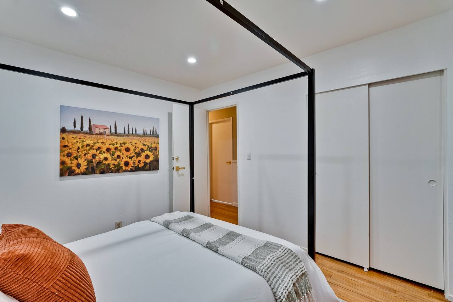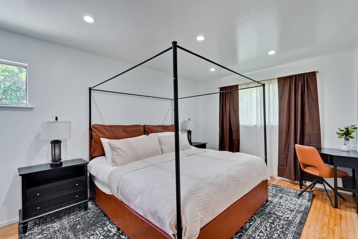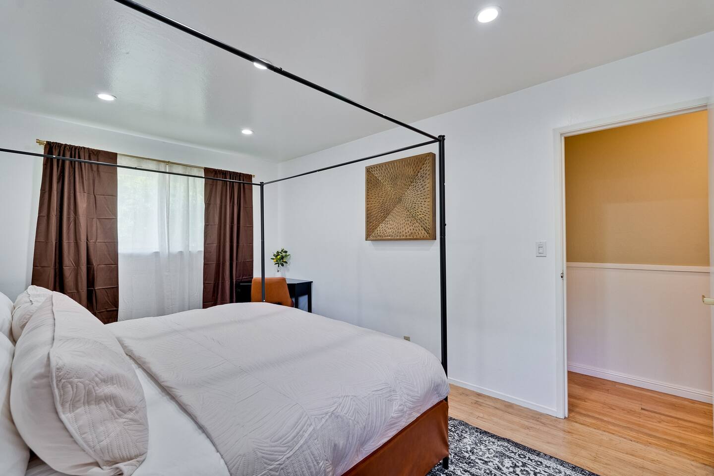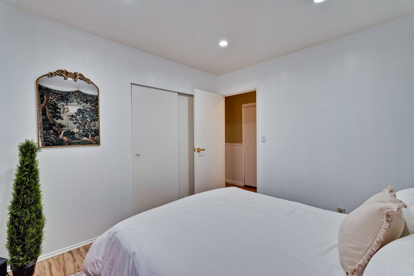 🍋 Fruit Tree Haven: Stroll through a lush garden filled with lemon, orange, and plum trees—your own slice of Mediterranean paradise. 📚 Library Lounge: Cozy up with a good book in our Italian-inspired lounge, featuring curated reads, plush seating, and warm ambient lighting. 🛏️ Tuscan-Inspired Decor: Embrace timeless Italian charm through earthy tones, textured finishes, and classic elegance throughout the home. 🌿 Greenery-Filled Backyard: A tranquil retreat surrounded by mature trees and landscaping, perfect for morning coffee or sunset wine. 🪞 Elegant Bathrooms: Both bathrooms are styled with dual large mirrors, curated amenities, and thoughtful lighting. 🛒 Prime Location: Nestled in Almaden’s serene neighborhood—Costco, Safeway, Target, and top restaurants all just 5 minutes away. BEDROOMS Enjoy restful nights in thoughtfully designed sleeping spaces with luxury linens and serene ambiance. ⭐️ 1. Master Bedroom: King Canopy bed, private master bath, large closet. ⭐️ 2. Queen Room: Queen bed, full-length mirror, and ample storage in the closet. ⭐️ 3. Queen Room: Queen bed, warm Tuscan tones and soft drapes. ⭐️ 4. Full Room: Full-size canopy bed, cozy and compact with natural light and charming accents. BATHROOMS Refresh and recharge in spa-inspired bathrooms. ⭐️ Two full bathrooms ⭐️ Dual oversized mirrors for added style and function ⭐️ Stocked with fresh towels, shampoo, conditioner, body wash, hand soap ⭐️ Hair dryer, diffuser, bathroom mats included KITCHEN Whether whipping up a quick breakfast or hosting a group dinner, our fully equipped kitchen has everything you need. ⭐️ Rice cooker, water kettle, coffee maker ⭐️ Oven, microwave, oven toaster, blender ⭐️ Dining table seats 6 comfortably ⭐️ Stocked with cookware, utensils, and basic pantry staples LIBRARY LOUNGE & LIVING ROOM Our Italian-inspired lounge blends old-world charm with functional elegance. ⭐️ Lounge Seating: Velvet armchairs, large bookshelves with handpicked titles, warm lighting ⭐️ Decor: Tuscan textures with rustic wood, wrought iron accents, and terracotta hues ⭐️ Open-Concept Living Room: Plush sectional seating, refined finishes, and a calming atmosphere perfect for conversation or reading GARDEN Designed for serenity and socializing, the backyard is your private oasis. 🌳 Fruit Trees: Lemon, orange, and plum trees throughout the garden 🌱 Large Lawn: Ideal for picnics, yoga, or family games 🪑 Outdoor Lounge: Comfortable seating to soak up the serenity 🏡 Mediterranean touches: Gravel paths, planters, and flowering accents complete the look 🎯 Cornhole Game: Challenge friends and family to a fun game of cornhole on the lawn. UTILITY ROOM Perfect for extended stays. ⭐️ Washer & Dryer ⭐️ Complimentary detergent provided NEARBY AMENITIES (within 5-minute drive) 🛒 Groceries: Costco, Safeway, Target 🍽️ Dining: Local cafes, family-run Italian spots, and casual eats 💪 Gyms: City Sports Club, 24 Hour Fitness