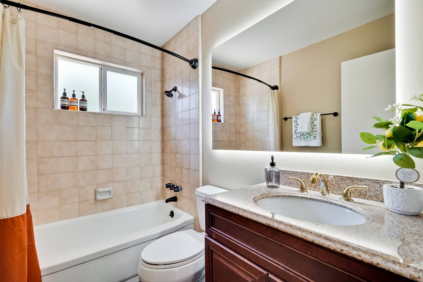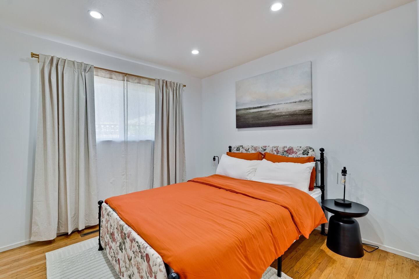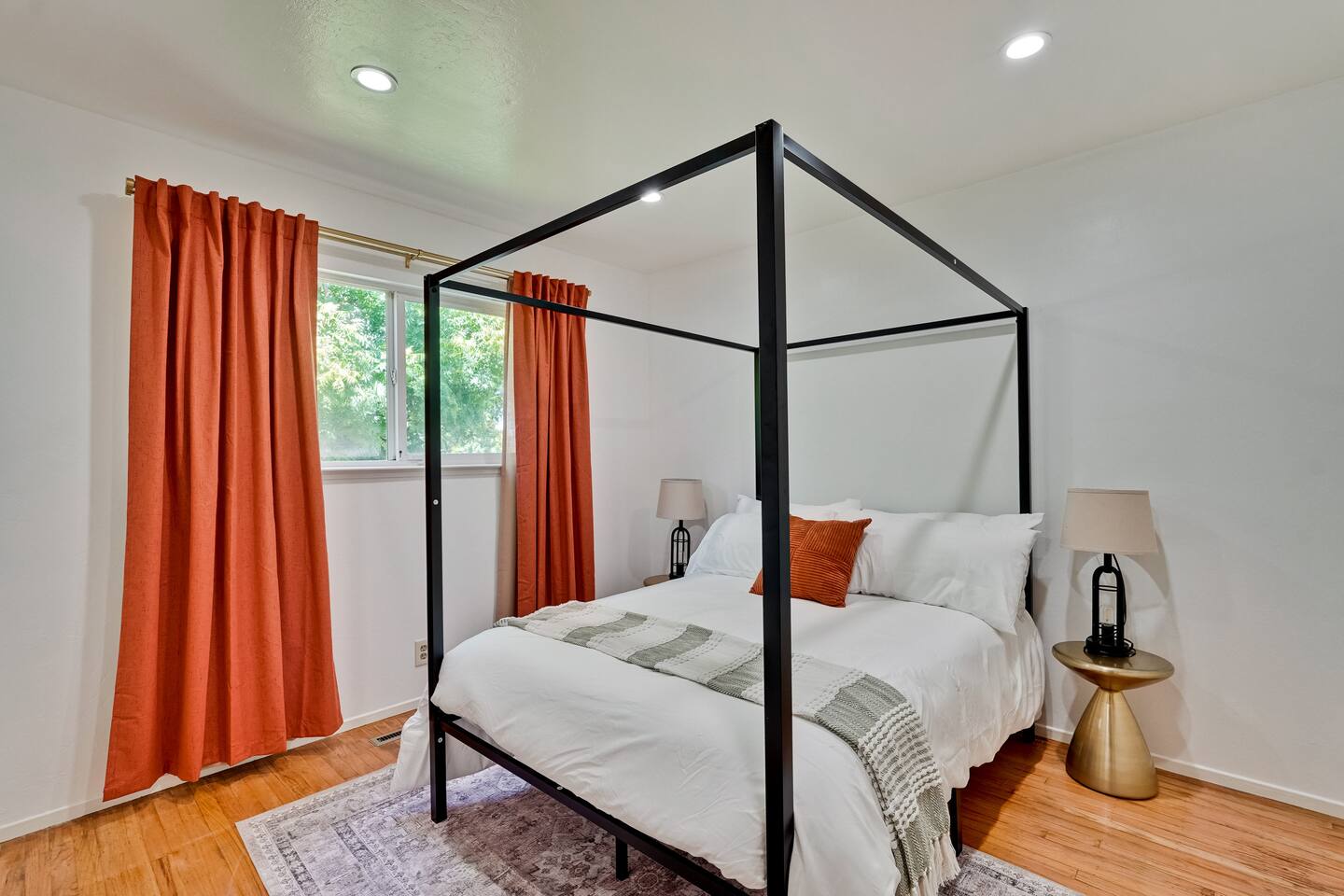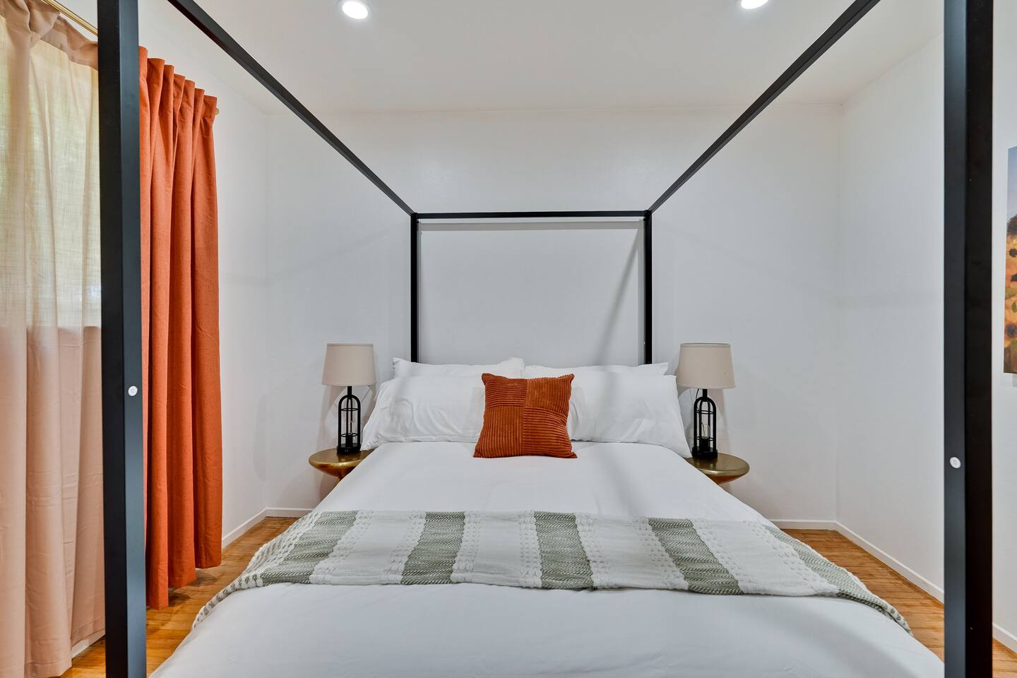 🍋 Fruit Tree Haven: Stroll through a lush garden filled with lemon, orange, and plum trees—your own slice of Mediterranean paradise. 📚 Library Lounge: Cozy up with a good book in our Italian-inspired lounge, featuring curated reads, plush seating, and warm ambient lighting. 🛏️ Tuscan-Inspired Decor: Embrace timeless Italian charm through earthy tones, textured finishes, and classic elegance throughout the home. 🌿 Greenery-Filled Backyard: A tranquil retreat surrounded by mature trees and landscaping, perfect for morning coffee or sunset wine. 🪞 Elegant Bathrooms: Both bathrooms are styled with dual large mirrors, curated amenities, and thoughtful lighting. 🛒 Prime Location: Nestled in Almaden’s serene neighborhood—Costco, Safeway, Target, and top restaurants all just 5 minutes away. BEDROOMS Enjoy restful nights in thoughtfully designed sleeping spaces with luxury linens and serene ambiance. ⭐️ 1. Master Bedroom: King Canopy bed, private master bath, large closet. ⭐️ 2. Queen Room: Queen bed, full-length mirror, and ample storage in the closet. ⭐️ 3. Queen Room: Queen bed, warm Tuscan tones and soft drapes. ⭐️ 4. Full Room: Full-size canopy bed, cozy and compact with natural light and charming accents. BATHROOMS Refresh and recharge in spa-inspired bathrooms. ⭐️ Two full bathrooms ⭐️ Dual oversized mirrors for added style and function ⭐️ Stocked with fresh towels, shampoo, conditioner, body wash, hand soap ⭐️ Hair dryer, diffuser, bathroom mats included KITCHEN Whether whipping up a quick breakfast or hosting a group dinner, our fully equipped kitchen has everything you need. ⭐️ Rice cooker, water kettle, coffee maker ⭐️ Oven, microwave, oven toaster, blender ⭐️ Dining table seats 6 comfortably ⭐️ Stocked with cookware, utensils, and basic pantry staples LIBRARY LOUNGE & LIVING ROOM Our Italian-inspired lounge blends old-world charm with functional elegance. ⭐️ Lounge Seating: Velvet armchairs, large bookshelves with handpicked titles, warm lighting ⭐️ Decor: Tuscan textures with rustic wood, wrought iron accents, and terracotta hues ⭐️ Open-Concept Living Room: Plush sectional seating, refined finishes, and a calming atmosphere perfect for conversation or reading GARDEN Designed for serenity and socializing, the backyard is your private oasis. 🌳 Fruit Trees: Lemon, orange, and plum trees throughout the garden 🌱 Large Lawn: Ideal for picnics, yoga, or family games 🪑 Outdoor Lounge: Comfortable seating to soak up the serenity 🏡 Mediterranean touches: Gravel paths, planters, and flowering accents complete the look 🎯 Cornhole Game: Challenge friends and family to a fun game of cornhole on the lawn. UTILITY ROOM Perfect for extended stays. ⭐️ Washer & Dryer ⭐️ Complimentary detergent provided NEARBY AMENITIES (within 5-minute drive) 🛒 Groceries: Costco, Safeway, Target 🍽️ Dining: Local cafes, family-run Italian spots, and casual eats 💪 Gyms: City Sports Club, 24 Hour Fitness