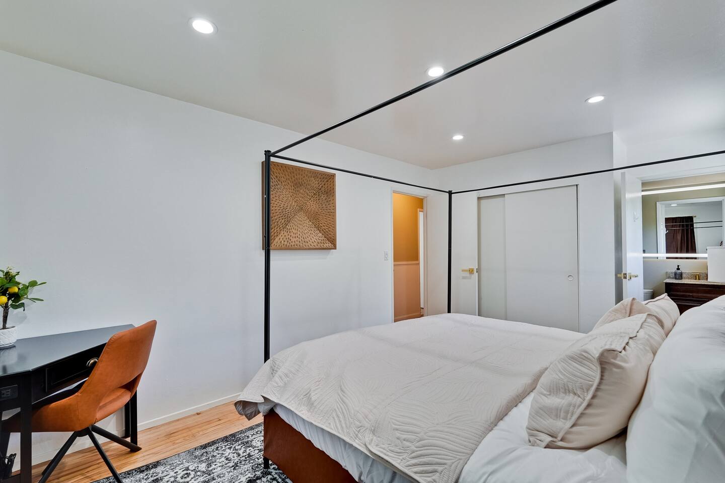 Step into style and comfort at this 4-bedroom retreat in Almaden, San Jose. The heart of the home is a thoughtfully curated library lounge—designed with cozy seating, warm lighting, and a handpicked book collection, perfect for unwinding or quiet inspiration. Outside, a private backyard awaits with citrus trees (lemon, orange & more) and serene seating. Great for families, friends, or creatives seeking calm and charm.